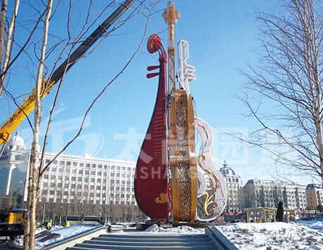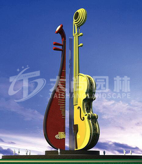 小提琴加琵琶共同融合的雕塑制作,生動的體現出和諧之音,促進和諧發展,奏響幸福樂章。